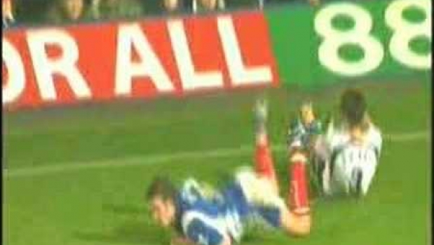 po nazwie tego filmiku i kiedy zobaczylem jak on leci to myslalem ze on udawal ze bedzie sie zwijal z bulu ze tamten go tez zfaulowal XD