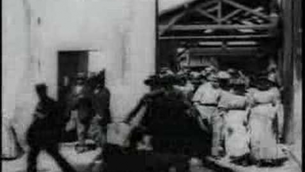 To niestety nie jest pierwszy film... Jeden z pierwszych tak, ale pierwszym był "przyjazd pociągu na peron" braci Lumiere (nie mam pojęcia jak to się pisze, zresztą ten film też oni nakręcili)