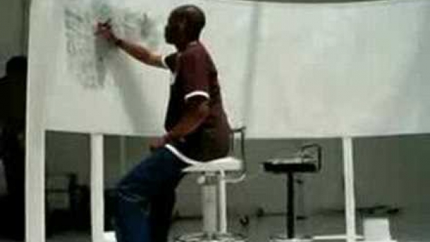 on jest chory umyslowo... widzialem go na discovery on to rysuje ale sam nie wie co... 5 dla niego :)