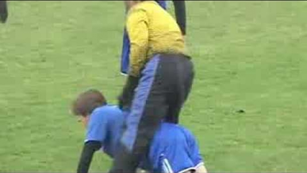 ale powiedźcie mi po ch.uja on tam stał ?? no jeżeli wiedział ze taki wybije aut to musiał się już liczyć że moze dostać w konncu chciał zdjąć tą piłke chyba głowo nie ?? ;/