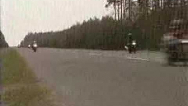 200, 250km/h i nawet nie zgiał motocykla przy skręcaniu :D