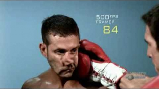 Uderzenie w twarz i rejestrowane jest przez nowoczesne kamery, a następnie odtworzone w zwolnionym tempie.