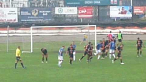Rzut wolny wykonany przez Kamila Gawrzydka w...