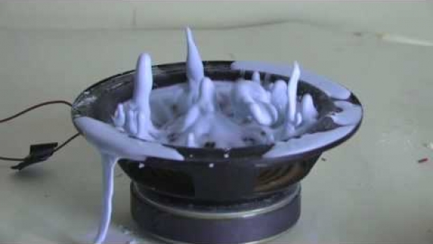 Ciekawy efekt przy użyciu głośnika, skrobi i wody.