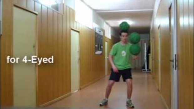 balans 3 piłkami na jednej ręce.