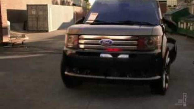 Scena przedstawia zmianę wyglądu Forda Mustanga na Forda Flexa w najnowszej odsłonie Knight Ridera.