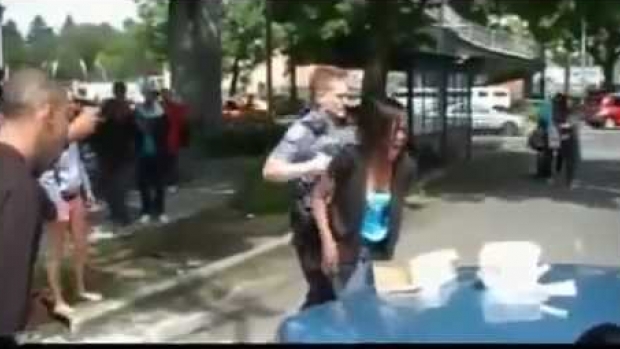 Brutalność policji... Wszystko zaczyna się kiedy kobieta przechodzi przez jezdnię w niedozwolonym miejscu.