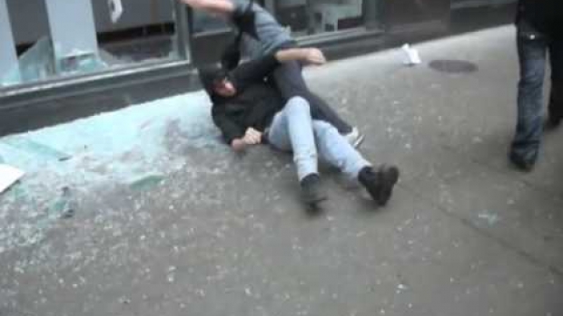 Jeden chciał coś ukraść ale został powstrzymany przez innego protestującego.