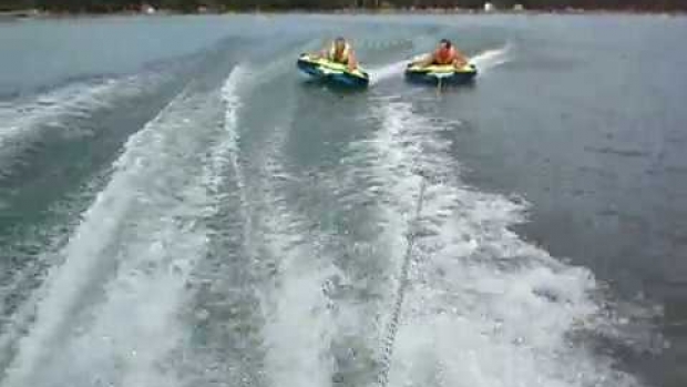 Wakacje wywrotka na kole ciągnientym za motorówką