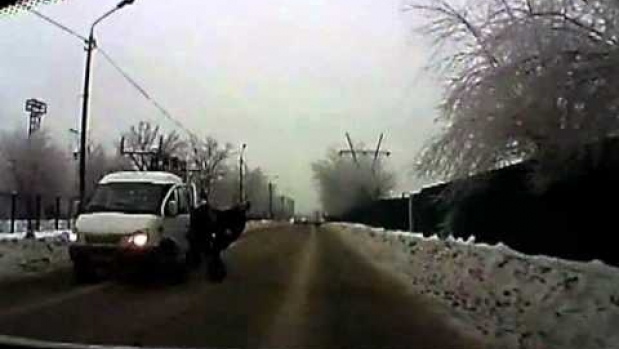 Po pierwsze oni na ulicy stali, po drugie koles sie nie poslizgnal tylko dostal w pysk od tego drugiego i wpadl pod kola, ogladnij uwaznie, w 7 sekundzie to widac dokladnie