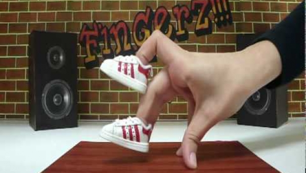 Pokaz tańca breakdance na palcach. Ciekawy pomysł, super ruchy oraz fajne buciki.