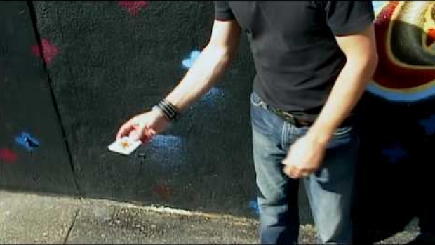 Jest cieniutka żyłeczka ... Najprawdopodobniej facet ma ją przyczepioną to czubka swojego "beretu". Wystarczy wejść na stronkę podaną na końcu filmiku i przeczytać co znajduje się w pakiecie do kupienia z kartą do tej sztuczki.