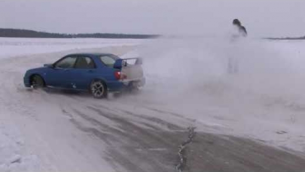 Oj blisko było, fotograf na zaspie i lecące subaru.