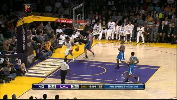 to zobacz skąd się wybił i w jaki sposób zapakował piłkę do kosza. Stań przed koszem i postaraj się o to i następnie zamknij pape lamusie.