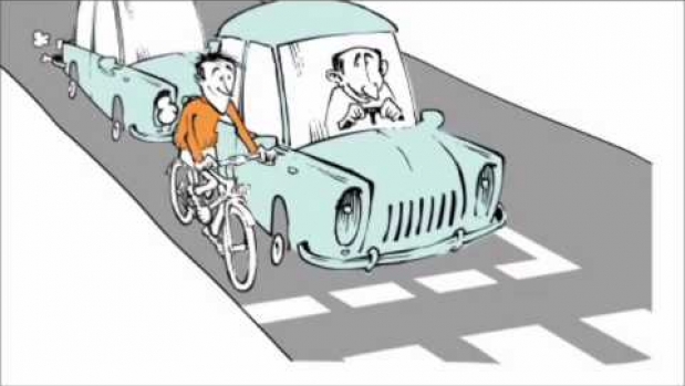 Rozwagi ? rowerzysta wpieprza się na drogę, która jest tak ciasna, że niemożna bezpiecznie wyprzedzać w czasie korku. Prawo gówniane, rowerzysta powinien jeździć na chodniku bądź na drodze rowerowej.