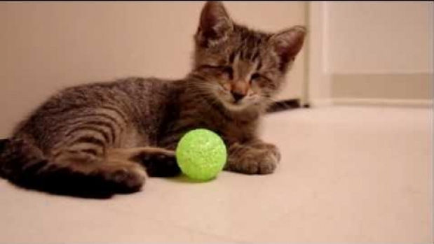 Maxiory > Zwierzęta > Niewidomy kot bawi się zabawką