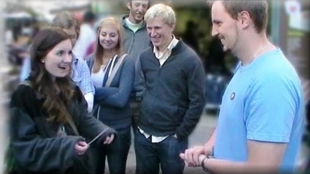 Gość sprawia, że przypadkowi ludzie, mając zamknięte oczy, potrafią zgadnąć, przedmiot, który przed nimi trzyma, albo co jest zapisane na odwrocie kartki, którą im dał.