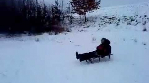 Twarde lądowanie na koniec zjazdu oraz bezcenna reakcja na połamane sanki