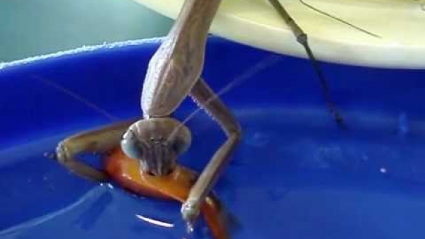 Modliszka atakuje rybkę