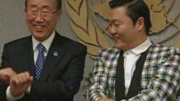 Maxiory > Poczekalnia > Psy and UN chief Ban Ki-moon do Gangnam Style dance at UN