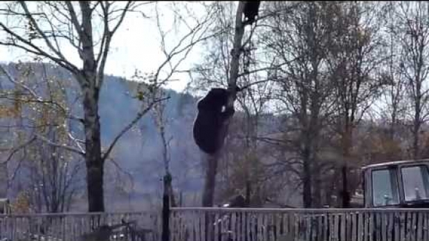 Niedźwiedź chodzący w pozycji wyprostowanej....