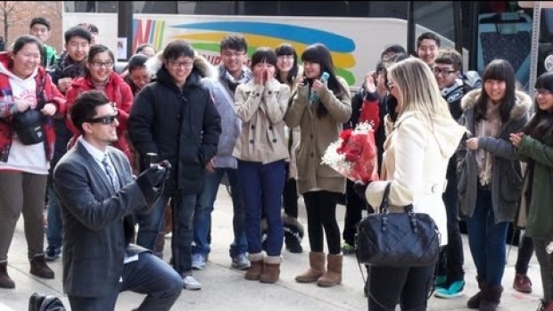 Reakcja przechodniów na nieprzyjęte oświadczyny.