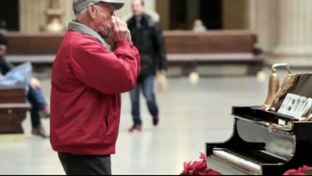 Fortepian postawiony na dworcu w Chicago...