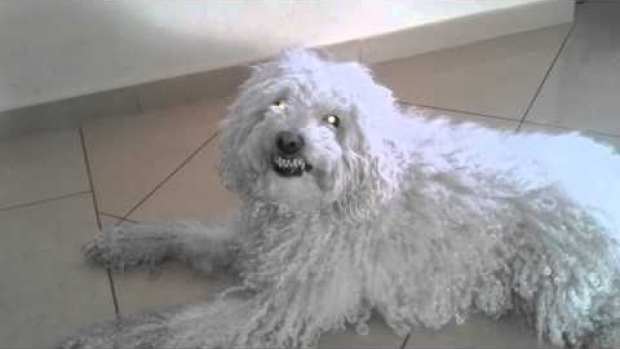 Ciekawy uśmiech psa spowodowany pstryknięciem. Film humorystyczny :P