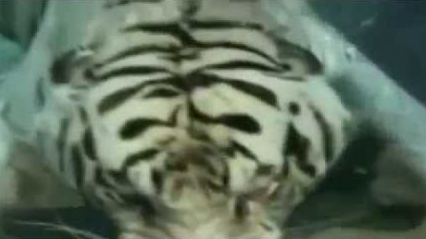 Współpraca tygrysów w celu wyjęcia młodego z...