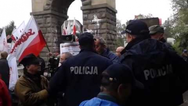 Nowy Sącz 27.09.2014: protest ws. rozbiórki pomnika armii czerwonej