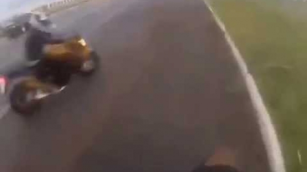 Motocyklista dostaje kołem w głowę. Każdego z nas może to spotkać.