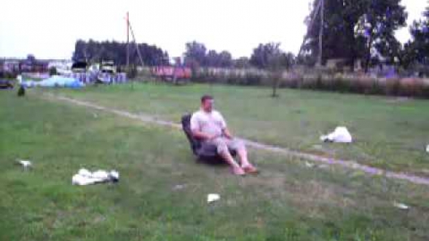 Koleś wystrzela się z poduszki powietrznej, przy czym mocno obija sobie 4 litery.