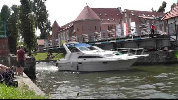 Obracanie mostu w Giżycku siłą ludzkich mięśni