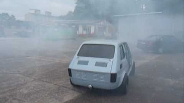 Krótki filmik demonstrujący Fiata 126p z silnikiem od motocykla Yamaha R1.