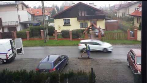 Niezawodne, ten pracownik nie dał tej dziurze w drodze żadnych szans :)