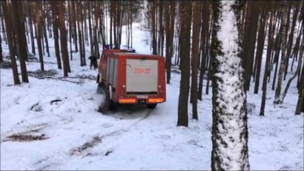Maxiory > Motoryzacja > Zjazd wozu strażackiego z górki w lesie