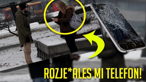 Gość rozwala telefony ludziom na ulicy