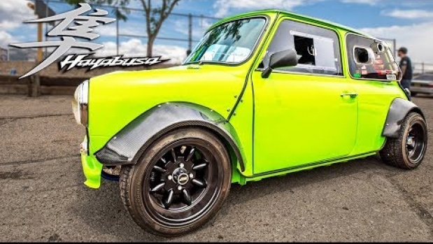 Jak w tytule, Mini Cooper po swapie z silnikiem od Suzuki Hayabusy. Tak, nie mylicie się, dobrze przeczytaliście dokładnie tak z motocykla.