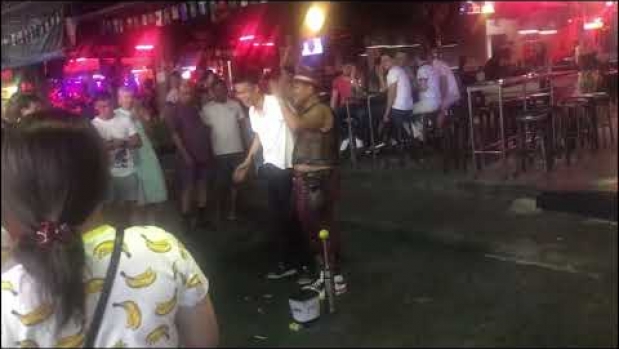 Magik w Tajlandii robi sztuczki z zapalonymi papierosami