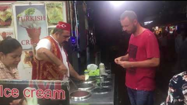 Turek prowadzi super sprzedaż żonglując lodami