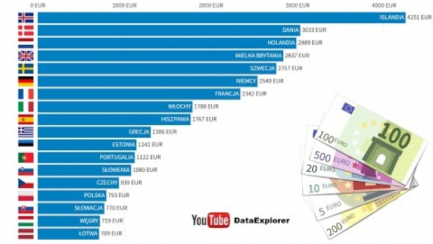 Islandia nie znajduje się w Unii Europejskiej, ale należy do Europejskiego Obszaru Gospodarczego. Byłem zaskoczony wysokością średniej pensji w tym kraju, dlatego dodałem ją do zestawienia. Do Unii Europejskiej należy 28 krajów. W wizualizacji jest mniej, ponieważ zależało mi na tym, aby była bardziej czytelna. Skorzystałem z danych Eurostatu. Jeśli chcecie zobaczyć inne statystyki, zapraszam na mój kanał na YT - DataExplorer.