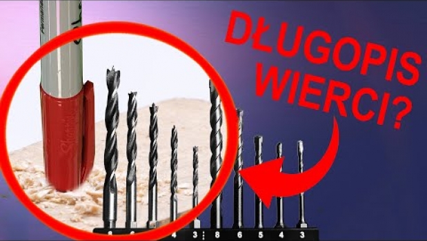 Test, czy długopis jest w stanie wywiercić otwór w desce.