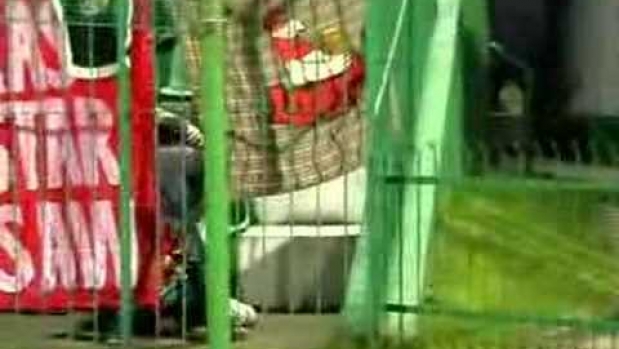 Śmieszna sytuacja na trybunach na meczu Dyskobolia - Crvena Zvezda