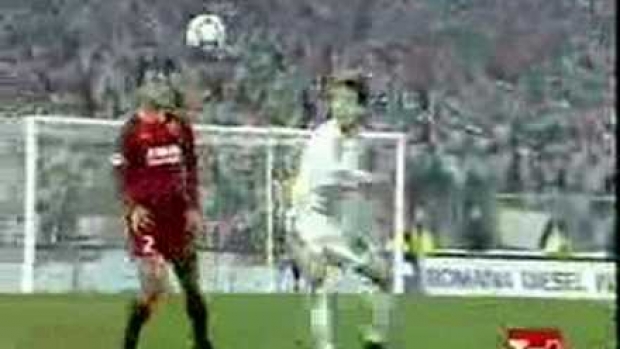 Do djtadeo - Cafu gra obecnie w Milanie, a Nedved w Juventusie, ale masz rację tutaj Brazylijczyk jest w stroju Romy. To dosyć stara akcja, Cafu grał wtedy w Romie, a Nedved w Lazio, natomiast ten trzeci piłkarz, który na końcu tej akcji przewrócił Cafu to zdaje się jest Simeone :)