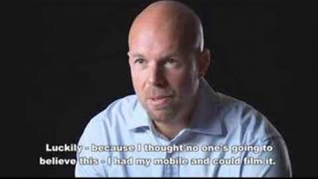 "Na podłodze była woda, pomyślałem. Wziąłem narzędzia, aby tą rurę naprawić. Pod koniec pojawiło się światło, a ja wstałem. Wtedy zobaczyłem samego siebie jako starszego pana, może koło 70."